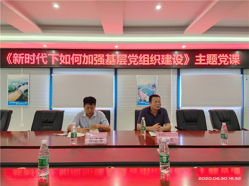 為紀(jì)念中國共產(chǎn)黨成立99周年,進(jìn)一步推進(jìn)黨支部標(biāo)準(zhǔn)化規(guī)范化建設(shè),2020年6月30日下午,合資公司黨支部與中共中建筑港集團(tuán)有限公司第九事業(yè)部欽州項目黨支部舉辦聯(lián)合黨課。中馬控股黨委涂衛(wèi)東同志以“新時代下如何做好基層黨建工作”為主題為全體黨員授課。