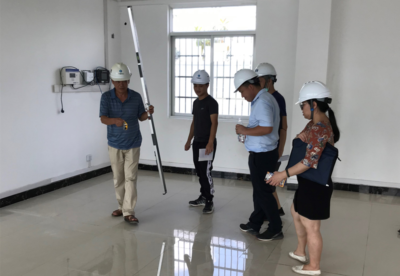 驗(yàn)收組對輔助用房進(jìn)行測量。